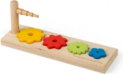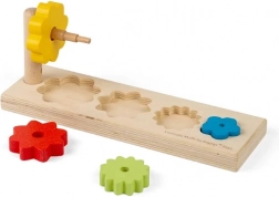 Tato dřevěná vkládačka spojuje vkládání a nasazování do jedné zábavné aktivity. Čtyři barevné květy se třídí podle velikosti a tvaru, což přirozeně podporuje rozvoj kognitivních dovedností a prostorového vnímání. Děti trénují úchop, přesnost a trpělivost při správném umístění jednotlivých dílků.