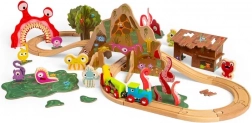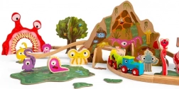- 50 dílů: lokomotiva, 2 vagónky, koleje, most, tunel, příšerky, strom se zvířátky, bažina, chatrč a další doplňky.