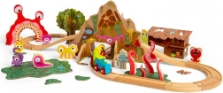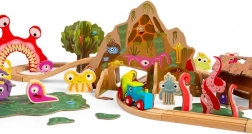 - Lokomotiva, 2 vagónky, koleje, most, tunel, figurky příšerek, strom se zvířátky, bažina, chatrč a doplňky