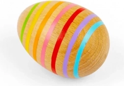 Toto pruhované hudební vajíčko z přírodního dřeva má hladký, pro dětskou ručku ideální tvar. Při třesení vytváří příjemný, jemný chrastivý zvuk, který podporuje vnímání rytmu a rozvíjí akustické schopnosti.