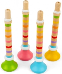 Roztomilá dětská trumpetka v pestrém pruhovaném designu potěší malé hudebníky. Podporuje rytmus, koordinaci a kreativitu, skvěle padne do dětské ruky a je vyrobena z kvalitního dřeva z odpovědných zdrojů. Splňuje evropské bezpečnostní normy. Cena je uvedena za 1 ks. K dispozici 4 barevné varianty.
