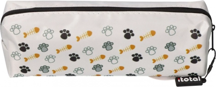 Bílý penál s potiskem koček a tlapiček upoutá pozornost a dodá školním pomůckám hravý styl.