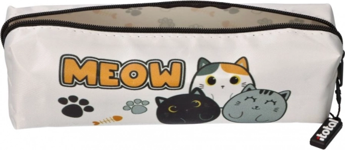 Roztomilý jednokomorový penál s motivem koček a nápisem MEOW je ideální pro každodenní nošení do školy i do kanceláře. Nabízí praktické zipové uzavírání, kompaktní rozměry a odolný textilní materiál, který udrží vaše psací potřeby bezpečně pohromadě.