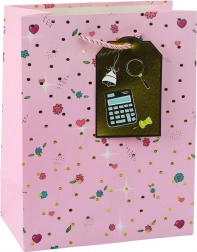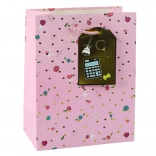 Dárková taška pro výjimečné školní příležitosti je skvěle navržená s moderním vzorem inspirovaným školními motivy, které přitahují pozornost a dodávají dárku jedinečný charakter. Vyrobena z kvalitního ozdobného kartonu, zajišťuje trvanlivost a estetičnost i při přenášení těžších předmětů. Zlatá šňůrová ucha poskytují pohodlnost a bezpečné přenášení.