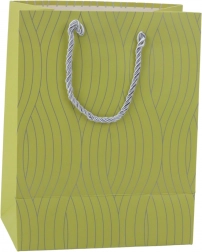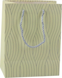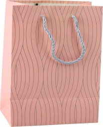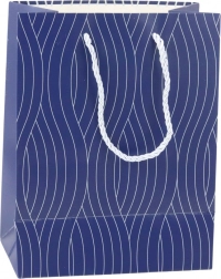 Dárková taška je vybavena pletenými bílými uchyty, které zajišťují pohodlné a bezpečné přenášení dárků. Je pevná a odolná, což umožňuje komfortní používání i u těžších dárků.