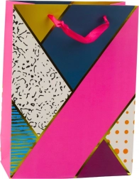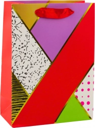 Každá taška je nejen esteticky propracovaná, ale také vybavena lesklými akcenty pro dodání elegance a originality. Geometrické vzory spolu s abstraktními a kontrastními barvami vytvářejí velmi efektní vizuální kompozici.