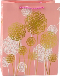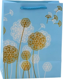 Dárková taška se může pochlubit krásným motivem pampelišek, který zjemní vzhled každého dárku.