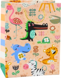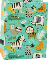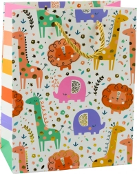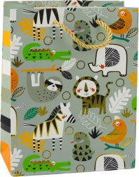 Tato papírová dárková taška s motivy safari zvířat přidá kouzlo vašim dárkům. Každá taška má pevné a barevné provedení, které zaujme každého. Solidní ucha poskytují pohodlné přenášení, zatímco přitažlivé vzory plné šťastných zvířátek zaujmou jak děti, tak dospělé.