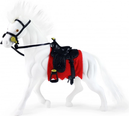 Kůň je vybaven sedlem a uzdečkou, takže si děti mohou zahrát na skutečné jezdce a vymýšlet vlastní příběhy.