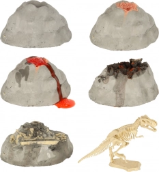 Tento interaktivní vědecký set přenese malé badatele do světa prehistorie i chemie. Po smíchání kyseliny citronové a hydrogenuhličitanu sodného vznikne efektní, ale bezpečná „erupce“ sopky – s pěnou a bubláním pro skutečný efekt WOW. Poté děti s pomocí nástrojů opatrně odhalí kostru dinosaura a kamenné minerály.