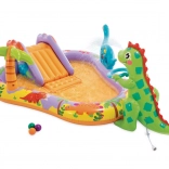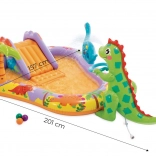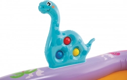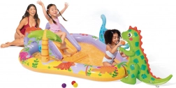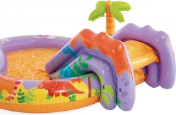 Proměňte zahradu v malý vodní ráj. Nafukovací vodní centrum INTEX kombinuje mělké brouzdaliště, skluzavku s polstrovaným dojezdem a fontánku – stačí připojit zahradní hadici a o osvěžení je postaráno. Barevný dinosauří motiv děti nadchne a přiláká k aktivnímu pohybu.