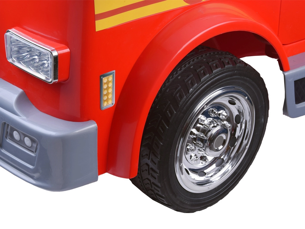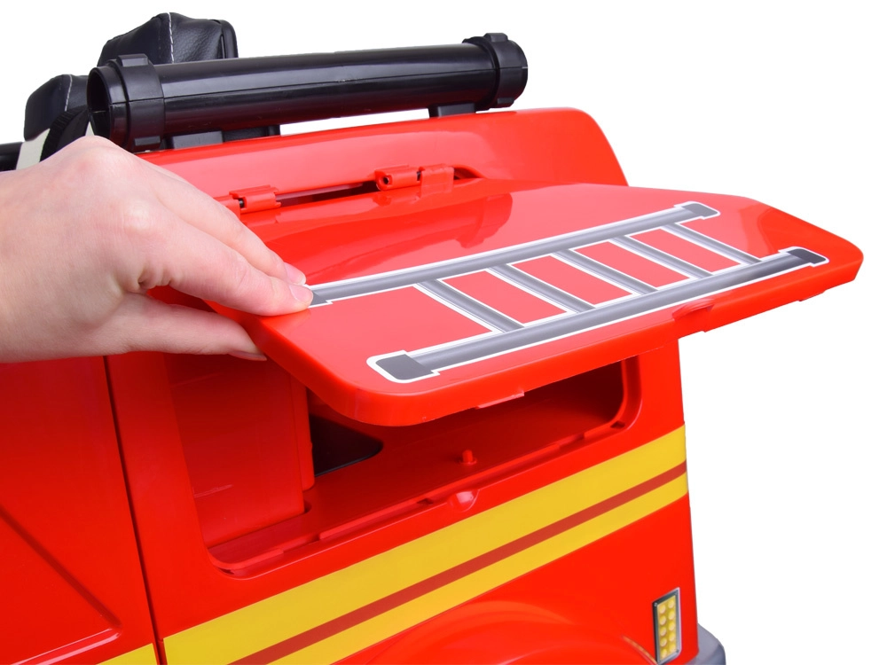 Toto robustní elektrické hasičské auto se dvěma motory 12 V / 35 W a gelovým akumulátorem 12 V 10 Ah zvládne malé i velké zásahy. Díky plynulému startu, zadnímu odpružení a měkkým EVA kolům je jízda komfortní na různých površích. O bezpečí se starají bezpečnostní pásy a okamžité brzdění po uvolnění pedálu.