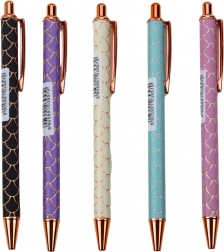 Stylový doplněk do kanceláře, do školy i na každý den. Kovová konstrukce s výrazným vzorem šupin vyniká elegantním vzhledem a dlouhou životností. Jemná šířka hrotu 1,0 mm zajišťuje rovnoměrnou stopu bez přerušování, modrý inkoust je trvanlivý, nevybledává a nerozmazává se.