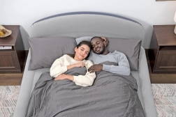 Velurový povrch je příjemný na dotek a snadno se čistí. Obvodový rám brání sklouznutí a zvyšuje pocit bezpečí během spánku.