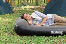 Užívejte si klidný spánek, ať jste kdekoli. Nafukovací postel BESTWAY Tritech kombinuje pevnou vnitřní konstrukci I‑Beam s odolným materiálem Tritech, který drží tvar i při dlouhodobém používání. Příjemný velurový povrch brání klouzání povlečení a zajišťuje komfort po celou noc.