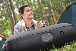 Vestavěná USB 5V/2A pumpa nafoukne matraci přibližně za 3 minuty a nechybí ani možnost foukání ruční pumpou. Integrovaný polštář zvyšuje pohodlí, po vyfouknutí je matrace kompaktní a snadno se přenáší i skladuje – ideální na kempování, do hostinského pokoje i jako dočasné lůžko.