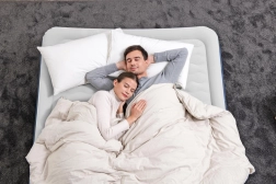 Dvojitá pumpa nafoukne matraci za cca 4 minuty a průběžně udržuje ideální tvrdost pro klidný spánek bez propadání.