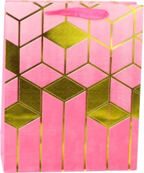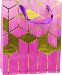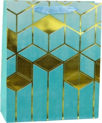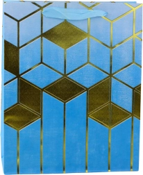Tato elegantní dárková taška spojuje moderní design s praktičností. Zdobí ji výrazné zlaté geometrické motivy a syté barvy, které z ní dělají reprezentativní obal pro každý dárek. Pevný ozdobný karton a odolné šňůrkové uši zajišťují pohodlné a bezpečné přenášení.