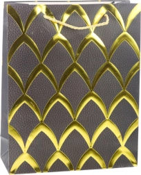 Tato stylová dárková taška dodá každému dárku nádech výjimečnosti. Bleskově zabalíte dárek a díky pevné konstrukci a odolnému materiálu jej bezpečně donesete až k obdarovanému. Zlaté zdobení v glamour stylu přitáhne pozornost a pozvedne prezentaci dárku na vyšší úroveň.