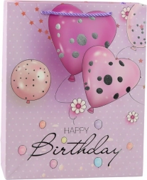 Dárková taška s veselým motivem balónků a elegantním nápisem Happy Birthday je skvělou volbou pro každé narozeniny. Kombinuje atraktivní design v růžové, modré, fialové a broskvové barevnosti s praktickým provedením, které bezpečně unese i těžší dárky.