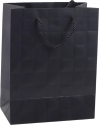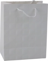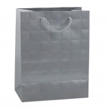 Tato stylová dárková taška vyniká čistým vzhledem a decentní texturou embosovaných čtverců, které působí moderně a zároveň luxusně. Díky pevnému ozdobnému kartonu a kvalitním provázkovým uchům je taška odolná a vhodná i pro těžší dárky.
