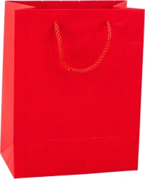 Ozdobný karton a silná šňůrková ucha zajišťují stabilitu a bezpečné přenášení i těžších dárků.