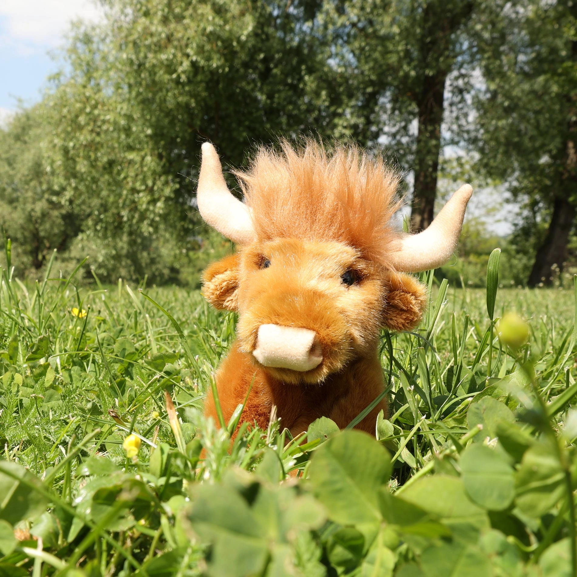 Roztomilý plyšový skotský náhorní skot o velikosti 16 cm je ručně šitý z vysoce kvalitního, jemného plyše. Díky realistickým detailům, měkoučkému zpracování a eco-friendly výplni z recyklovaných PET lahví je ideální na mazlení, dekoraci i jako dárek. Součást exkluzivní kolekce značky RAPPA.
