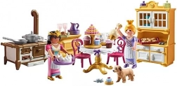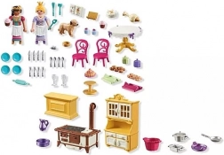 Ponořte se do světa kreativní hry s královskou kuchyní Playmobil Princess Magic. Dvě princezny, oblečené v roztomilých zástěrách, připravují lahůdky a servírují je na ozdobné podnosy. Sada nabízí mnoho detailů, včetně pěkně navrženého nábytku a realistických kuchyňských potřeb, které přinášejí kouzlo královského vaření k životu.