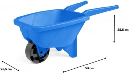 Lehké a odolné dětské kolečko do písku v modré barvě potěší malé stavitele na zahradě, na hřišti i na pláži. Má kompaktní rozměry 53 cm, ergonomické rukojeti pro snadné vedení a je vyrobeno z kvalitního, bezpečného a odolného plastu. Skvělé pro převoz písku, listí, hraček i drobných kamínků a pro rozvoj motoriky a koordinace.