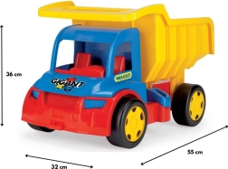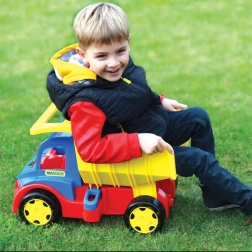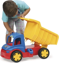 Objevte robustní dětský náklaďák WADER GIGANT o délce 55 cm s otevíratelnou korbou a dvojicí závěsů pro připojení přívěsu či tažné šňůry. Díky nosnosti až 150 kg zvládne svezení i sezení dětí, je vyroben z bezpečného a odolného plastu pro hraní doma i venku a podporuje jemnou motoriku, koordinaci i fantazii.