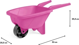 Lehké a odolné růžové dětské kolečko je ideální na zahradu, pískoviště i pláž. Má kompaktní rozměry 53 cm, vyprofilované rukojeti pro snadné řízení a je vyrobeno z bezpečného, odolného plastu vhodného do různých povětrnostních podmínek.