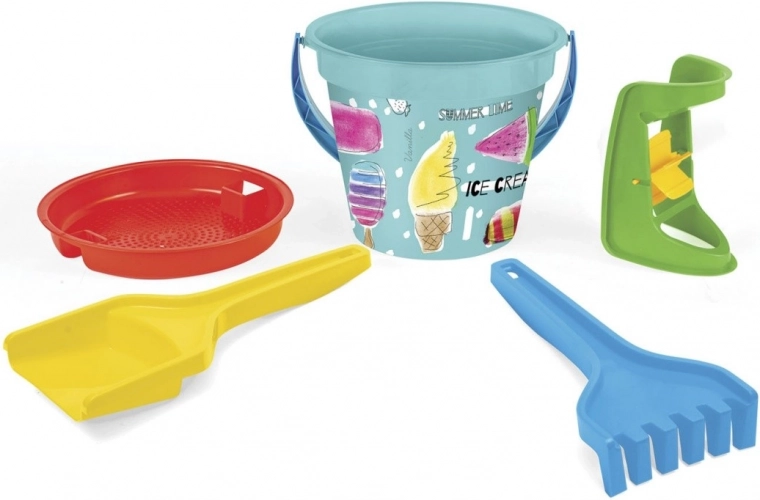 Sada na písek IML, 5 dílů, je skvělé vybavení pro každé dítě na pláž, hřiště i zahradu. Díky pestré letní barevnosti a kvalitnímu zpracování poskytuje dlouhé hodiny tvořivé zábavy. Grafika aplikovaná technologií IML je odolná vůči vodě i slunci, takže si zachová svůj vzhled i při intenzivním používání.
