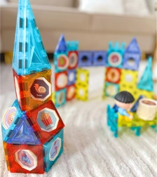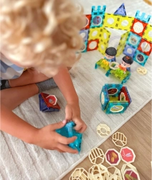 Silné magnety umožňují dětem rychle stavět a přestavovat. Konstrukce drží tvar a motivuje k dalším experimentům s tvary a barvami.