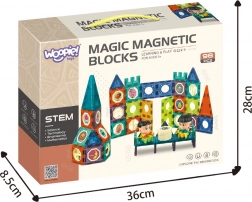 Objevte kreativní zábavu se stavebnicí magnetických kostiček WOOPIE. Díly se k sobě snadno přichytávají a děti z nich postaví různé konstrukce, například zámek. Součástí jsou 2 figurky, samolepky a návod. Hra rozvíjí logické myšlení, představivost, kreativitu, koncentraci i jemnou motoriku.