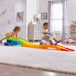 Vstupte do kouzelného světa s dětskou horskou dráhou s jednorožcem od značky STEP2. Barevná skluzná dráha s vozítkem na kolečkách nabízí aktivní zábavu, rozvíjí motoriku a rovnováhu a díky protiskluzovým schůdkům, vysokému opěradlu a tvarovaným stupátkům zajišťuje bezpečnou jízdu. Svítící roh a zvukové efekty umocní radost z každé jízdy.