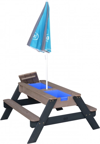 Dětský piknikový stůl AXI Nick s nádobami na písek a vodu a slunečníkem