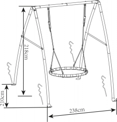 Objevte robustní zahradní houpačku typu hnízdo AXI s průměrem sedáku 120 cm – ideální pro děti od 3 do 10 let. Nabízí stabilní kovovou konstrukci, odolné vodě textilní sedátko a nastavitelné lany pro pohodlné houpání. Výška rámu 2,2 m zajišťuje široký rozsah pohybu a čtyři kotevní kolíky dodávají maximální stabilitu i na měkčím povrchu.