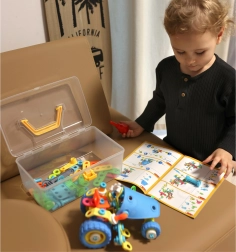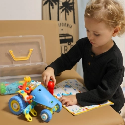 Stavebnice WOOPIE 6v1 STEM je ideální volbou pro malé konstruktéry od 5 let. Flexibilní dílky, kola a pohyblivé části umožní dětem skládat různé funkční modely vozidel – od nakladače po traktor s pluhem. Praktický šroubovák a klíč v balení podporují rozvoj manuální zručnosti a koordinace.