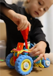 Děti si samy sestaví a rozloží modely pomocí přiloženého šroubováku a klíče – bezpečně, jednoduše a zábavně.