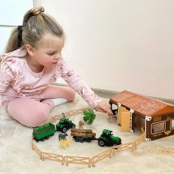 Děti rozvíjejí jemnou motoriku, slovní zásobu a představivost. Hra s figurkami a vozidly motivuje k vyprávění příběhů a učení o životě na farmě.