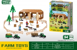 - 94 dílů pro hodiny zábavy: zvířata, lidé, traktory, přívěsy, stodola, ohrady a doplňky.
