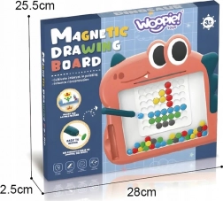 Magnetická tabule MagPad Dino je dokonalým nástrojem pro všechny kreativní děti, které chtějí rozvíjet své dovednosti a představivost. S magnetickým stylusem a barevnými magnetickými knoflíky mohou děti snadno vytvářet vlastní originální vzory. Guziki jsou rozmanitých barev, což podporuje rozpoznávání barev a manuální dovednosti. Díky jednoduché obsluze se tato tabule hodí i pro nejmenší děti od 3 let.