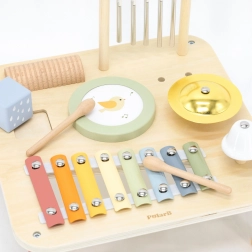 Každý prvek stolečku skrývá jiný fascinující nástroj, který povzbuzuje k experimentování a vytváření vlastních melodií. Tato multifunkční hračka je navržena tak, aby podporovala smyslový a kreativní vývoj dětí už od 18 měsíců.