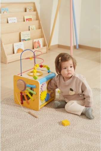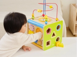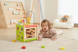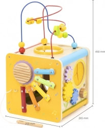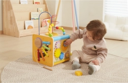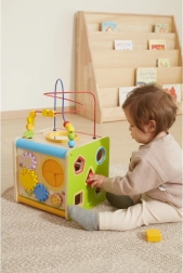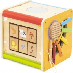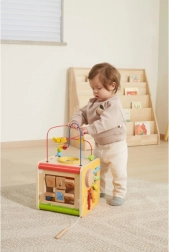 Masivní dřevo a hladce opracované hrany zajišťují bezpečné používání, zatímco syté barvy a zábavné mechanismy udrží pozornost malých objevitelů na dlouhou dobu. Kostka je skvělá pro samostatnou hru i společné chvíle s rodiči.