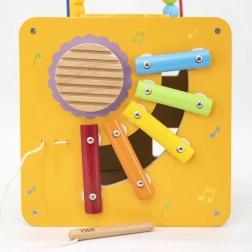 - 5 v 1 (labyrint s korálky, sorter tvarů, ozubená kolečka, hodiny, xylofon)