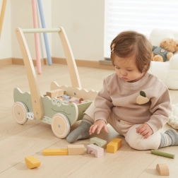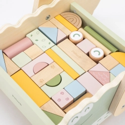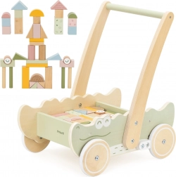 Barevné kostky v různých tvarech a pastelových barvách nejen povzbuzují děti k hravé tvořivosti, ale také rozvíjejí jejich jemnou motoriku. Měkká gumová kolečka chrání podlahy a zajišťují hladký pohyb. Tento krokodýl s roztomilým designem a jemnými barvami se stane oblíbenou hračkou každého dítěte!