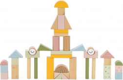 Různé tvary a pastelové barvy kostek povzbuzují ke kreativitě a výuce barev a tvarů.