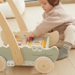 Zažijte radost z prvních kroků s chodítkem ve tvaru krokodýla. Jeho stabilní dřevěná konstrukce dodává potřebnou podporu a umožňuje dětem bezpečně prozkoumávat svět kolem sebe. Chodítko je vybaveno ergonomickou rukojetí, která napomáhá dětem udržet rovnováhu.