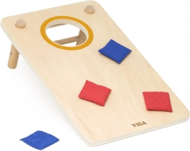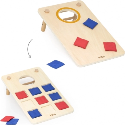Zábavná dřevěná házecí hra 2v1 od značky VIGA kombinuje klasický cornhole a křížky a kolečka. Díky pevnému dřevěnému provedení, šikmým nohám a látkovým sáčkům v červené a modré barvě nabízí rodinnou zábavu, rozvíjí koordinaci ruky a oka, trénuje přesnost hodu a podporuje strategické myšlení při hraní piškvorek.