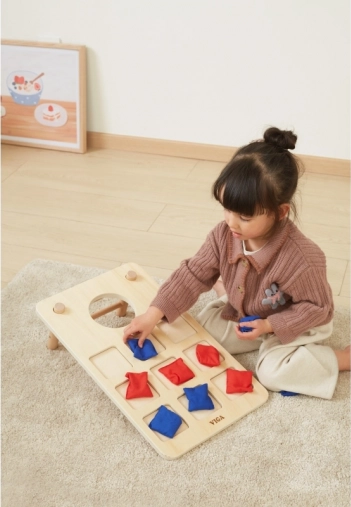 Součástí jsou měkké látkové sáčky ve dvou barvách (červené a modré) pro jednoduché rozlišení týmů. Děti si při házení procvičí jemnou motoriku, koordinační dovednosti i trpělivost, dospělí ocení rychlá pravidla a svižnou soutěž.